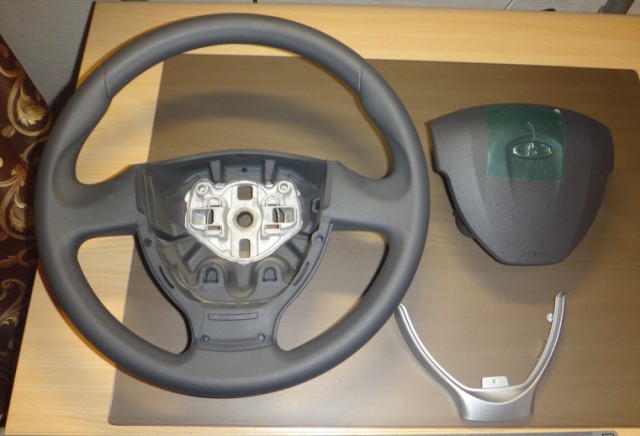 Кто не помнит - руль купил в инет магазине "Ставр" за 6500руб., разобрал, подушка фото №2, накладка фото №3, знакомые обтянули кожей 2000руб., ну и фото в деле...получилось хорошо, доволен, в процессе немного дорабатывал шоб нормально сигналило, кто будет делать расскажу.
